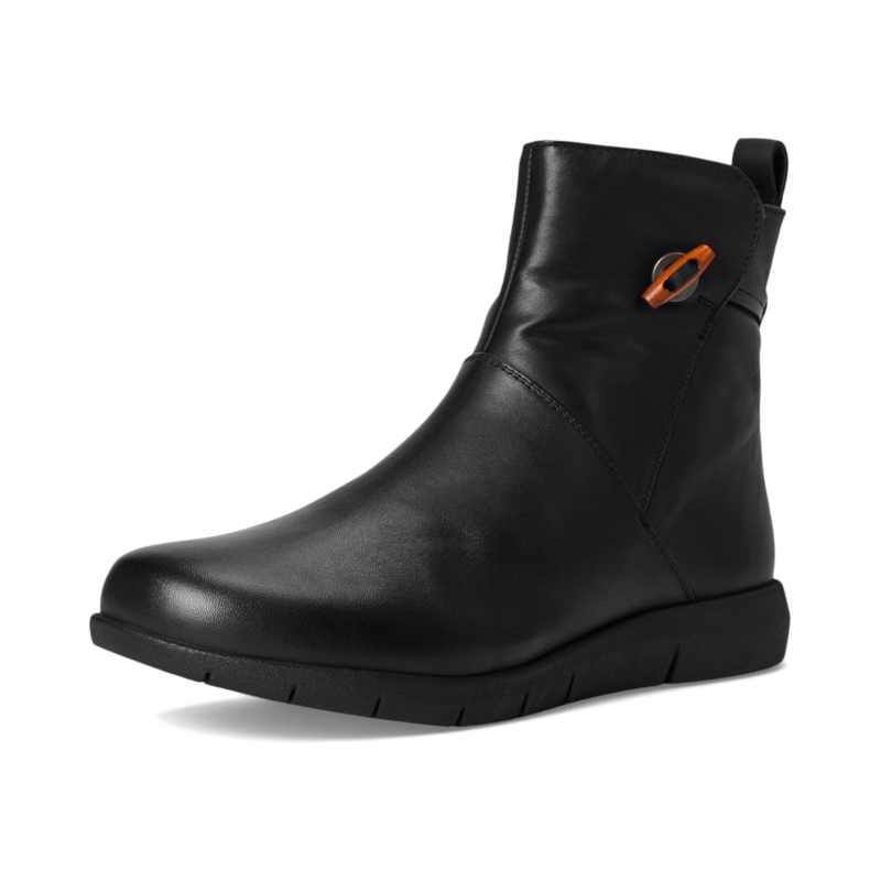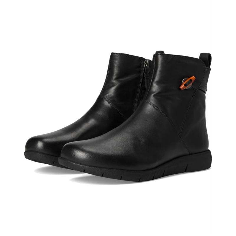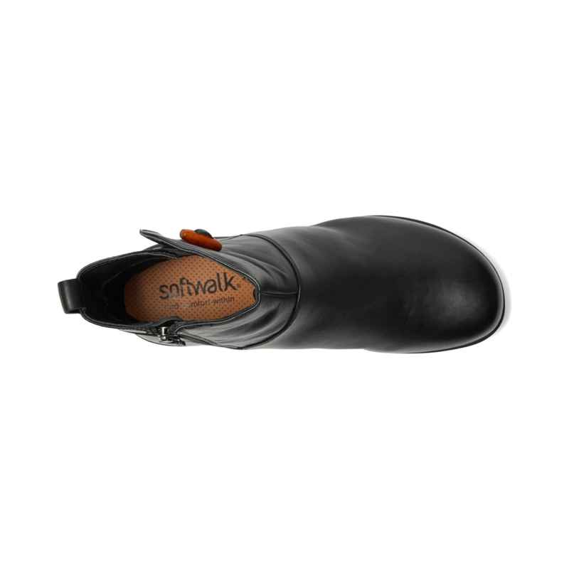The SoftWalk Adelaide boots are cute, casual boots that have a Chelsea style with a wooden button on the outside, but also feature a zippered side closure for easy wear. They have a cushioned footbed that is removable and has arch support. These ankle-high boots are made of a super-soft leather upper, a memory foam insole, and polyester lining. The texturised and cushioned rubber outsole offers added grip. These heeled boots make a great addition to your footwear collection.