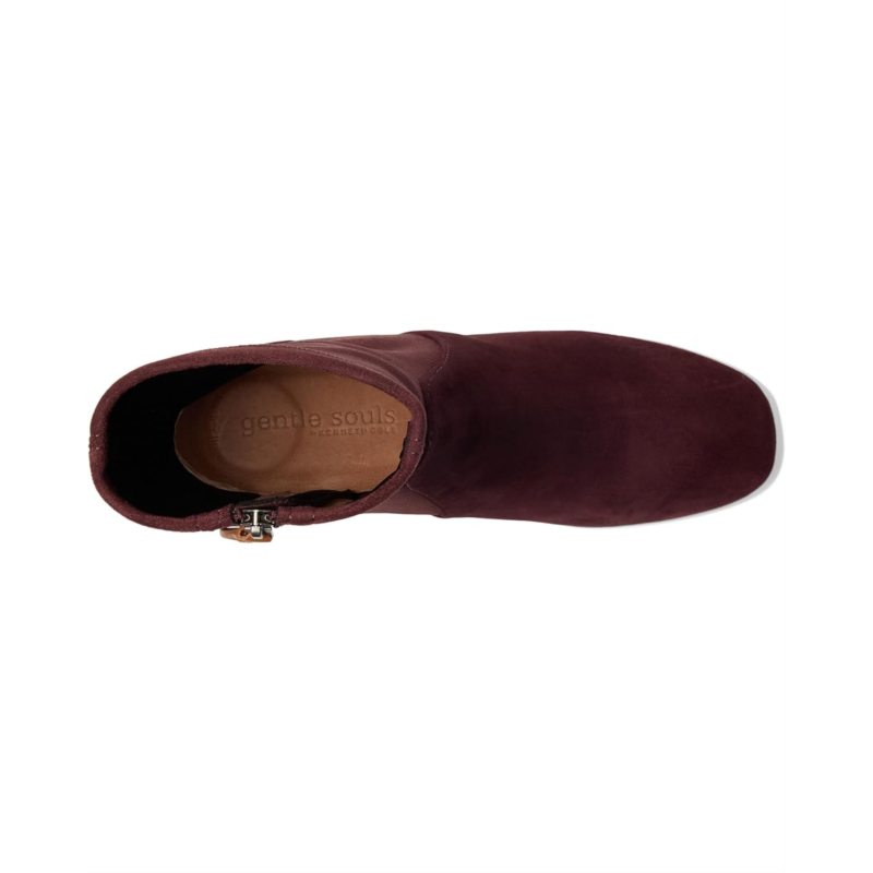 Waterproof and durable, the Gentle Souls by Kenneth Cole Emily boots are pull-on stretch ankle booties with an almond toe silhouette and comfort foam insole. The suede upper of these boots features a zippered side closure for easy wear and is lined with leather for added comfort. Add a bold look to your outfits wearing these heeled boots.