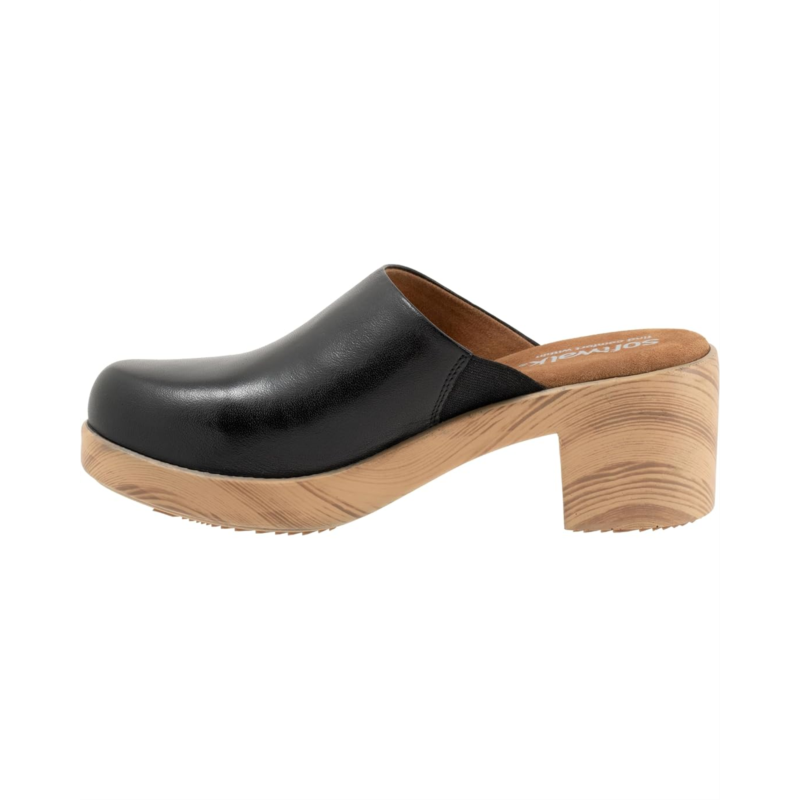 Step into style and comfort donning the SoftWalk Felida. Crafted with a luxurious leather upper and a woodenkorea outer sole, these fashion clogs boast a cushioned footbed with arch support for all-day comfort. Breathable leather linings, insole, and a durable rubber outsole make every step effortless and chic.