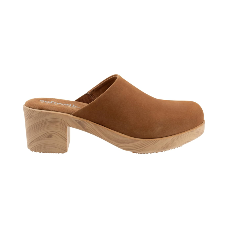 Step into style and comfort donning the SoftWalk Felida. Crafted with a luxurious leather upper and a woodenkorea outer sole, these fashion clogs boast a cushioned footbed with arch support for all-day comfort. Breathable leather linings, insole, and a durable rubber outsole make every step effortless and chic.