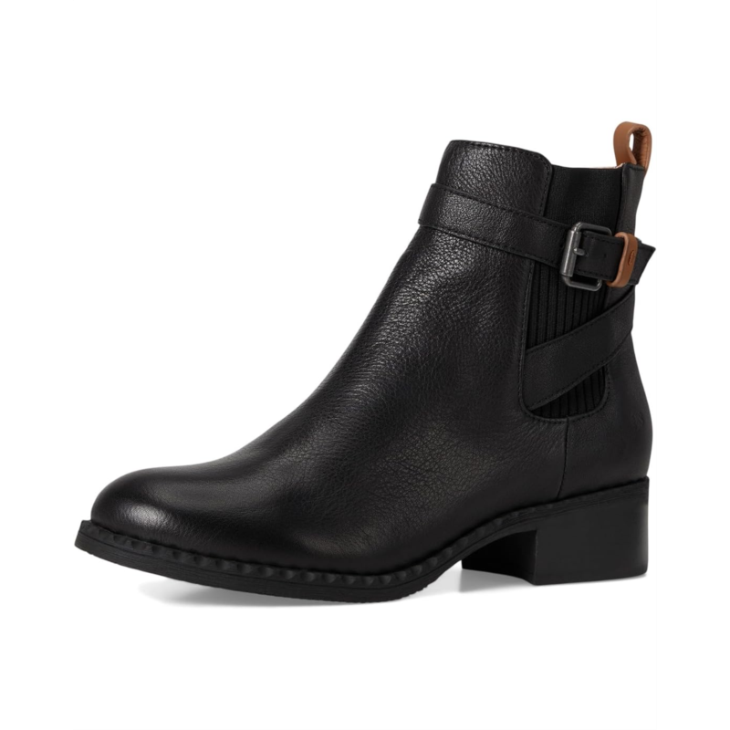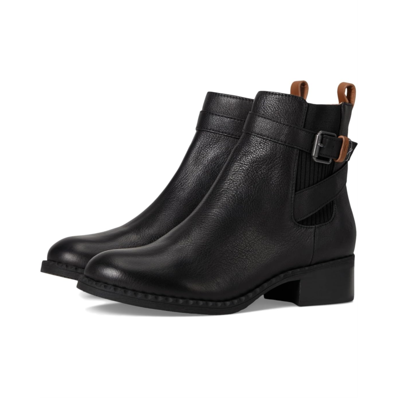 Boldly refined, the Gentle Souls by Kenneth Cole Bolton is your everyday essential with an edge. This ankle bootie features sleek leather upper, strap detailing, and a polished buckle accent for a modern utilitarian feel. Set on a low block heel with stretch side panels for easy on-and-off, it brings both comfort and cool to your wardrobe rotation. PORON Performance cushioning with superior shock absorption to reduce fatigue. Pair it with denim, dresses, or tailored trousers-this boot means business.
