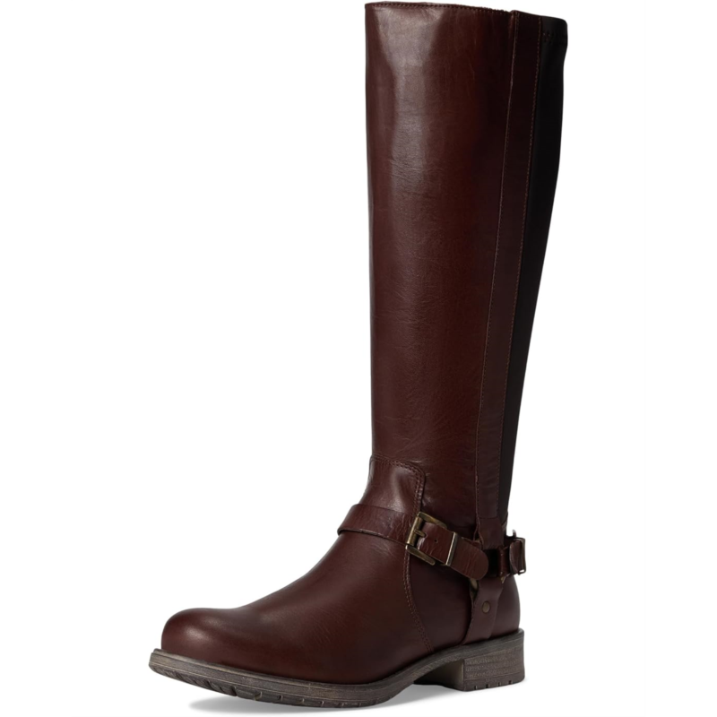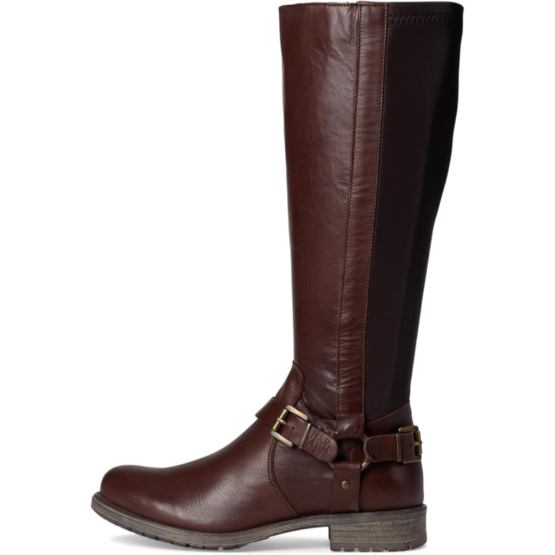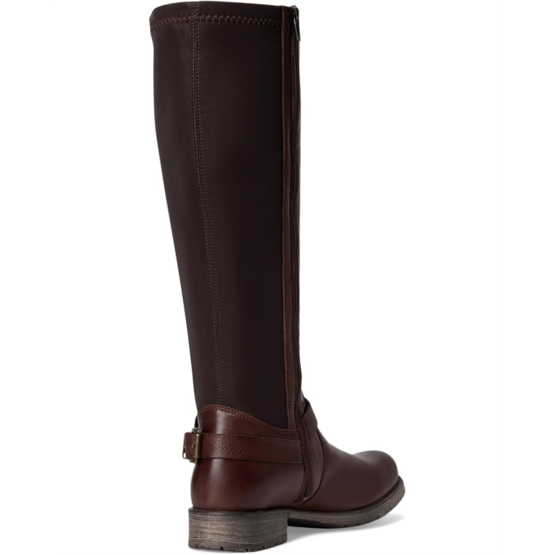 The Miz Mooz Palmyr Boots are sleek knee-high riding boots crafted from smooth leather with equestrian-inspired detailing and a flexible fit. Designed with a streamlined round toe silhouette, they feature a sleek buckle strap, and a stretch panel at the back for added comfort and adaptability around the calf. A zippered side closure offers wearable ease, while the rubber outsole ensures reliable traction.