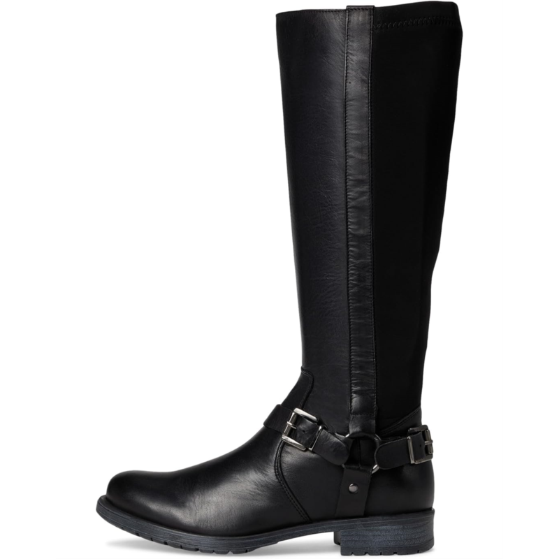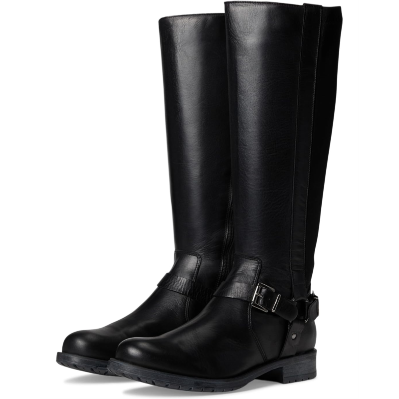 The Miz Mooz Palmyr Boots are sleek knee-high riding boots crafted from smooth leather with equestrian-inspired detailing and a flexible fit. Designed with a streamlined round toe silhouette, they feature a sleek buckle strap, and a stretch panel at the back for added comfort and adaptability around the calf. A zippered side closure offers wearable ease, while the rubber outsole ensures reliable traction.