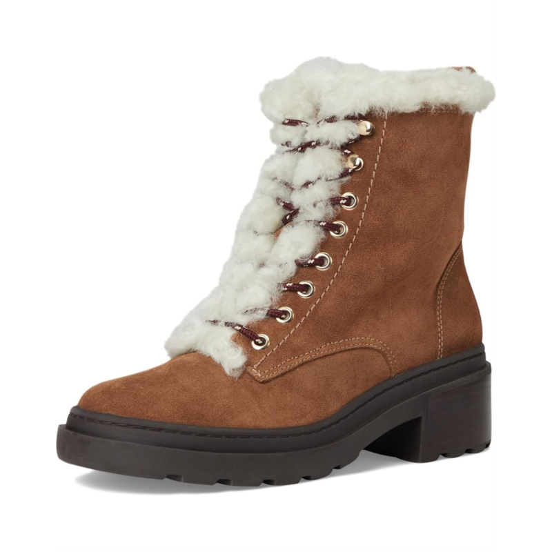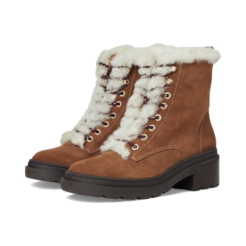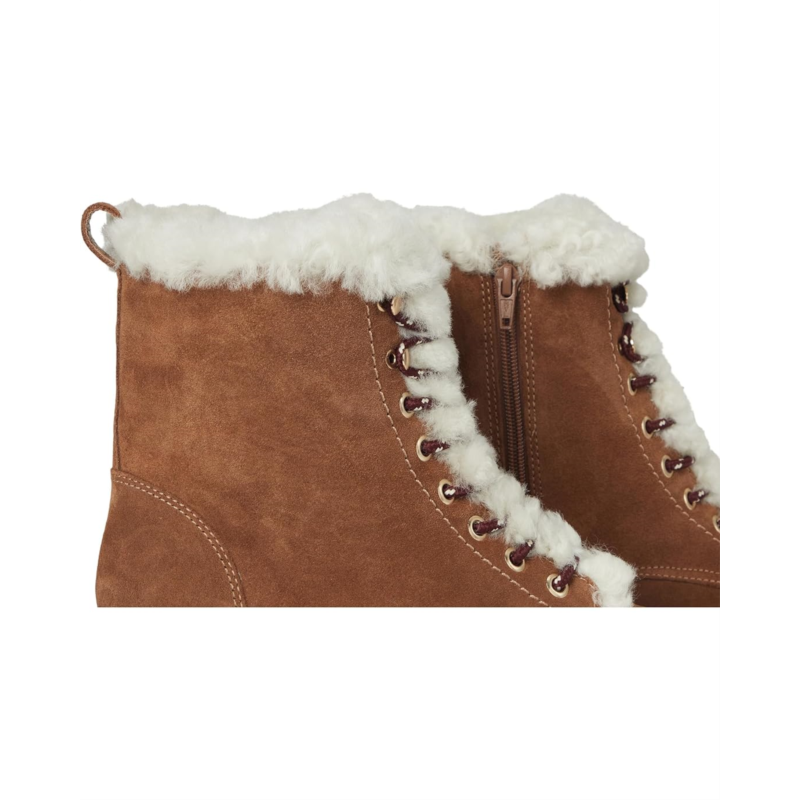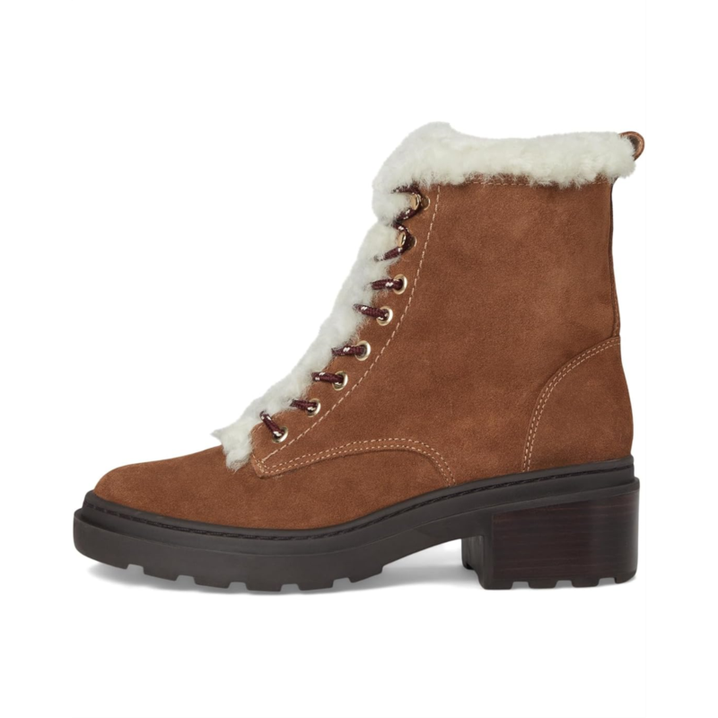 Headed North? A lace- up boot that keeps you in tight. Fixed on a thick lug sole bottom, fit with flecked laces, and a functional inside zip to ensure on-off ease. Warm shearling lines the shaft for winter protection and extra flair.