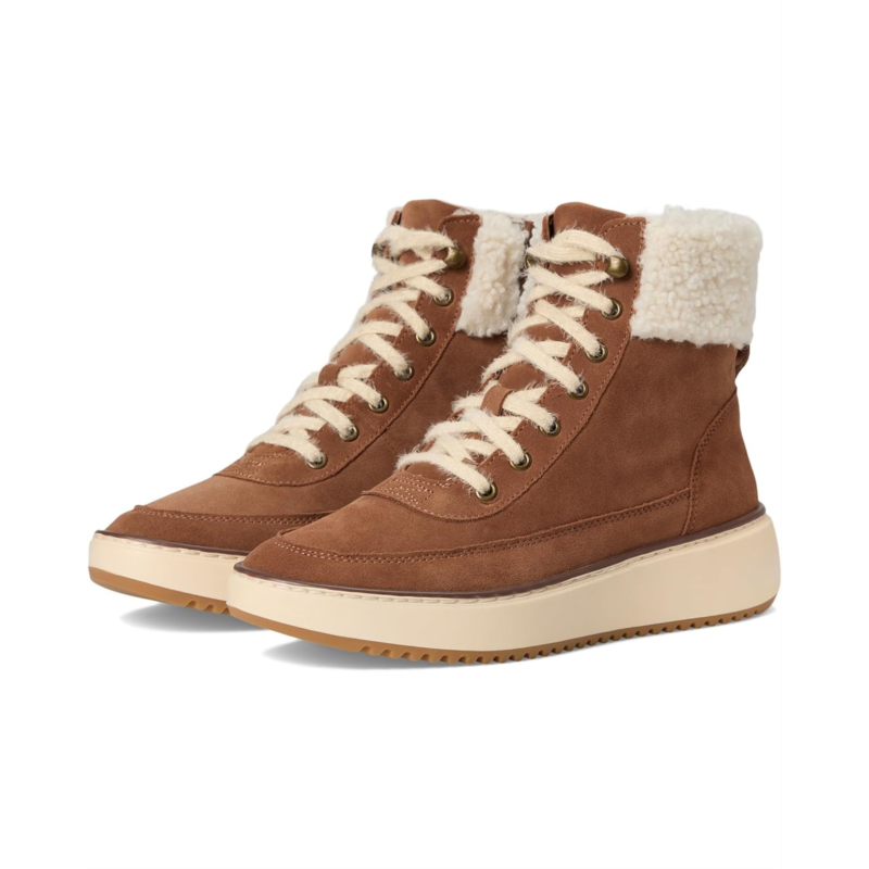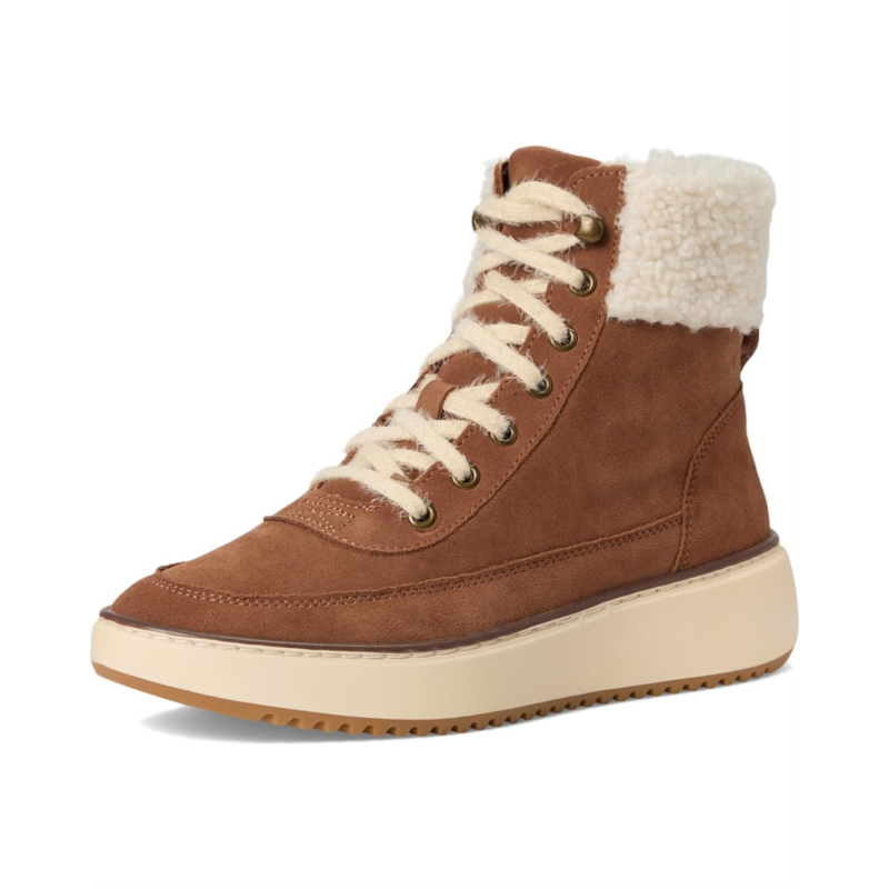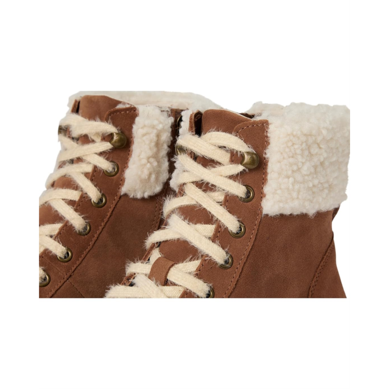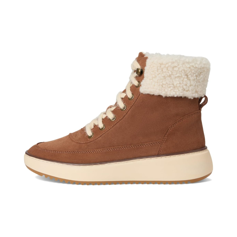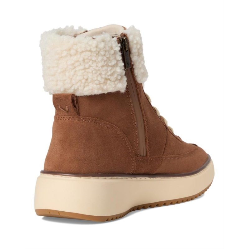 The Vionic Olympia Lace-Up Boot is a mid-shaft height boot designed for everyday wear when you want both support and weather readiness. It features a lace-up front with a zippered side closure for ease of use, a faux-shearling collar for warmth, and a high-traction rubber sole to handle various surfaces.