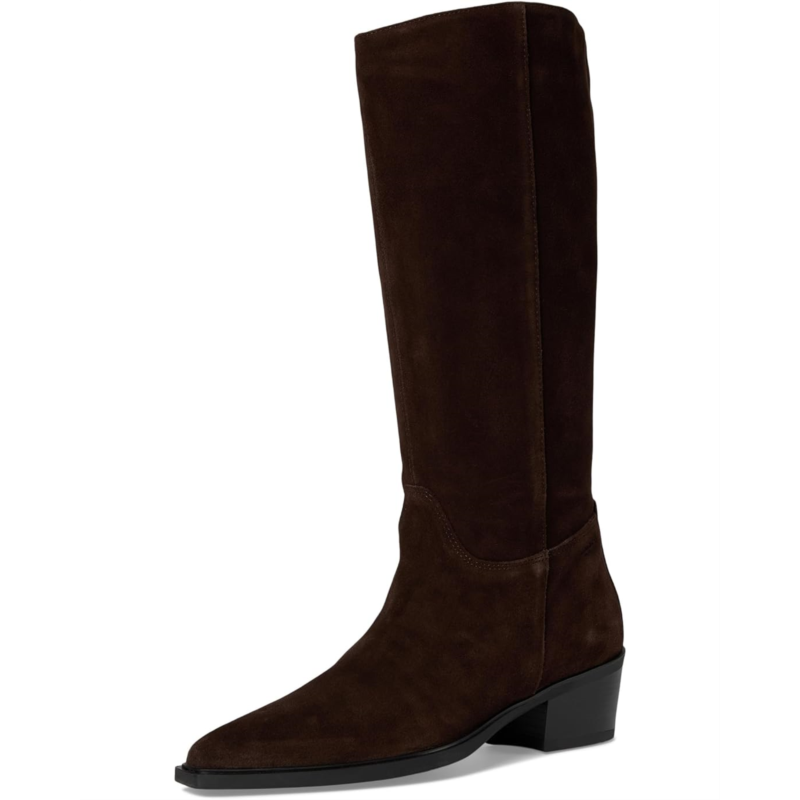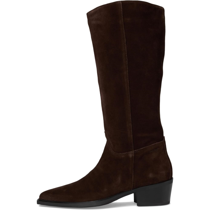 Kelsey is the minimalistic tall boots with a western-inspired aesthetic. The knee-high style is crafted from suede and features a pointed-toe shape, pull-on shaft and decorative seams. The sleek block heels measure 40mm.