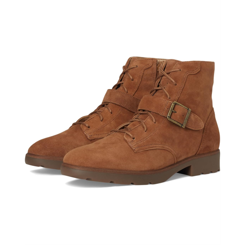 Designed for those who embrace both adventure and sophistication, this VIONIC Catina suede lace-up boot is your go-to for refined versatility. A modern take on a timeless silhouette, it features soft, luxe suede, a statement buckle detail, and a lightweight lug sole for confident traction. Whether you''re navigating city streets or weekend getaways, this boot blends effortless style with all-day comfort. A biomechanically designed footbed for comfort that keeps you in motion. Built-in VIO MOTION Technology footbed featuring contoured arch support, with shock-absorbing cushioning, deep heel cup to provide stability, and forefoot flexibility. The exclusive alignment technology balances the whole you.