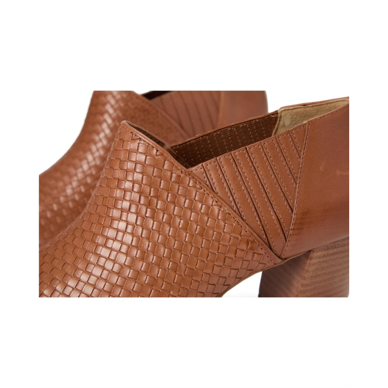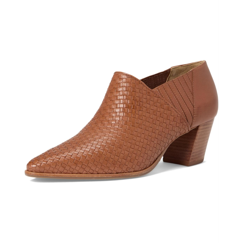 Question everything? This Bernardo Famous low-ankle bootie challenges the notion that comfort and elegance are contradictory, thanks to its handcrafted woven leather upper, block heel, and elasticized side panel for wearable ease.