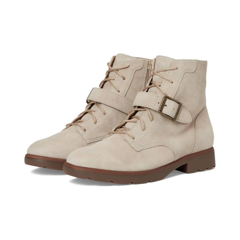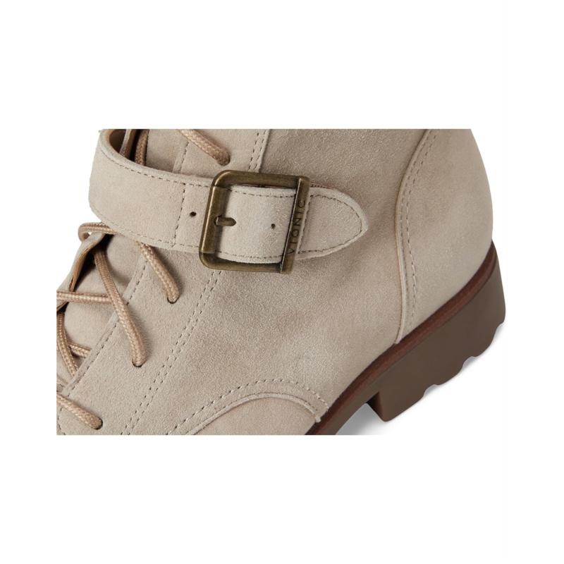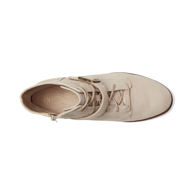 Designed for those who embrace both adventure and sophistication, this VIONIC Catina suede lace-up boot is your go-to for refined versatility. A modern take on a timeless silhouette, it features soft, luxe suede, a statement buckle detail, and a lightweight lug sole for confident traction. Whether you''re navigating city streets or weekend getaways, this boot blends effortless style with all-day comfort. A biomechanically designed footbed for comfort that keeps you in motion. Built-in VIO MOTION Technology footbed featuring contoured arch support, with shock-absorbing cushioning, deep heel cup to provide stability, and forefoot flexibility. The exclusive alignment technology balances the whole you.