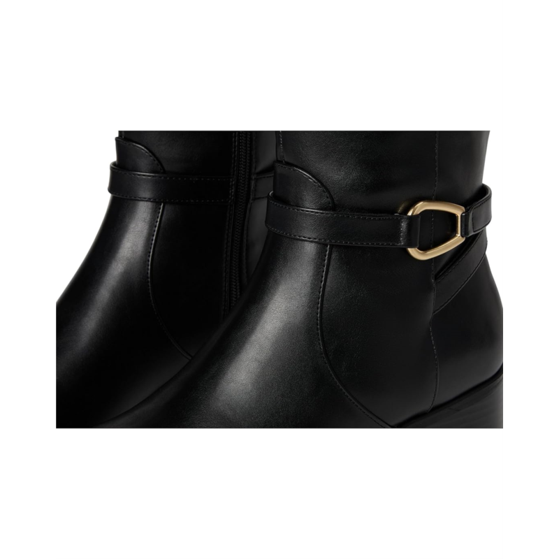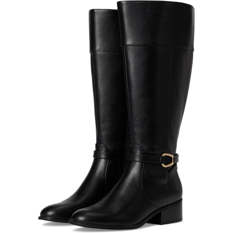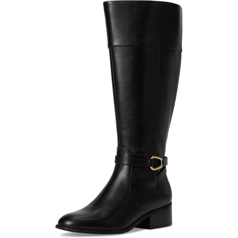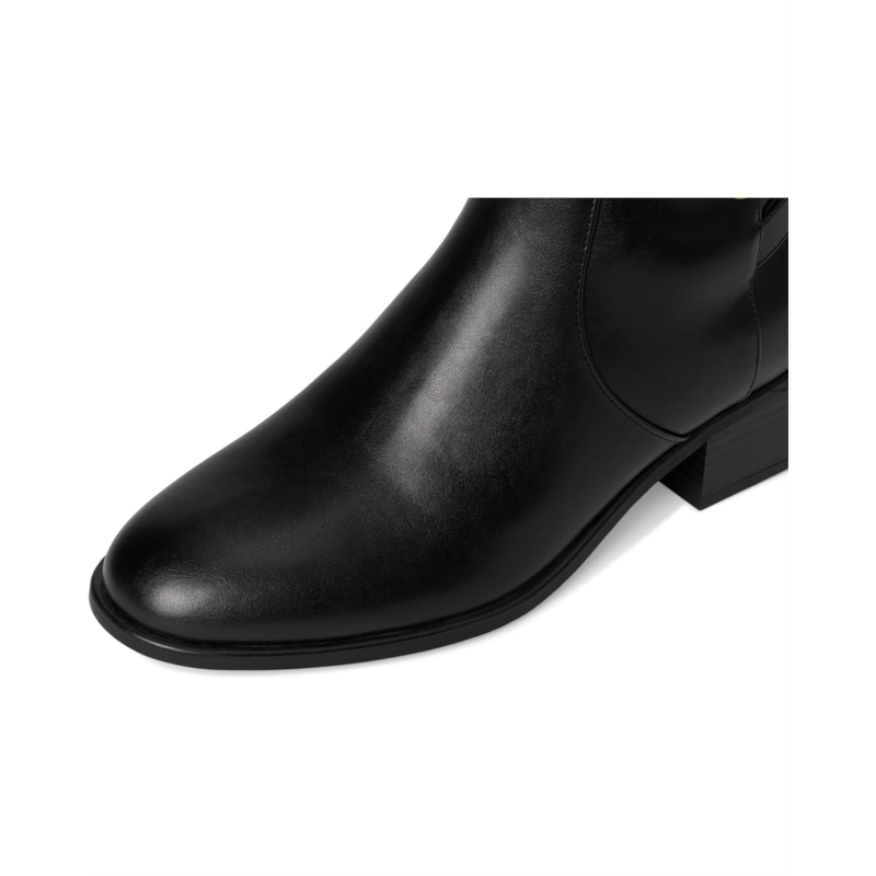 Add a hint of charming flair to your ensemble wearing the Bandolino Dennie riding boots. This knee-high footwear has eye-catching hardware at the sleek ankle strap and a cushioned footbed for all-day comfort. The synthetic upper is accompanied by a block heel and side zipper for easy entry.