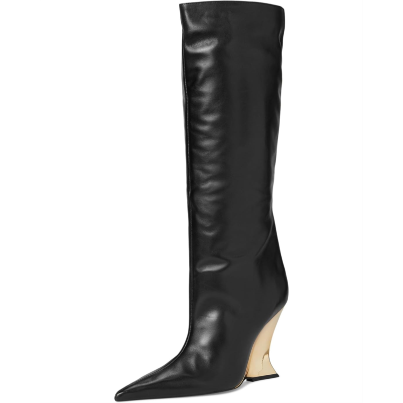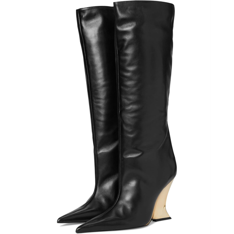 Bring a touch of style and confidence to your looks with the Schutz Siena Boots. These calf-high boots are made of a leather upper that features a pull-on style. The foam insole and leather lining make them comfortable to wear for long hours. Make your fashion statement wearing these heeled leather boots.