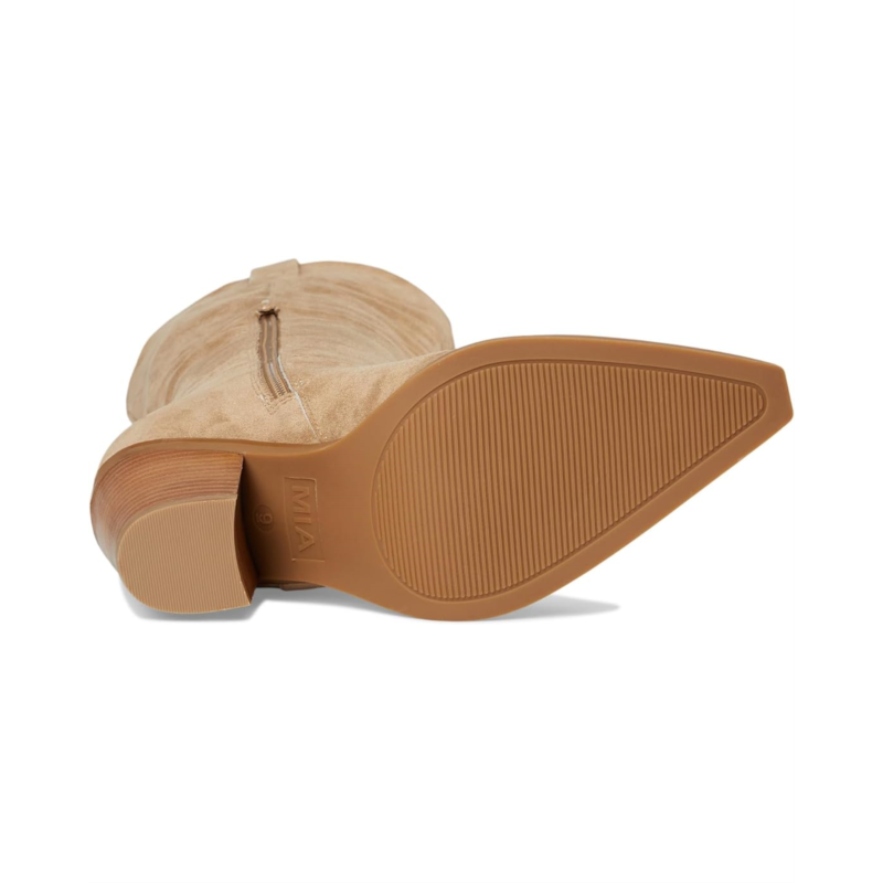 Stand tall, stride boldly, and own every moment in the MIA Messini boots. Designed with a luxe faux suede upper and a smooth faux leather lining, these knee-high stunners are made to steal the spotlight. The round toe keeps it classic, while the block heel gives you the perfect lift without compromising comfort. Featuring the MIA Signature Footbed and cushy foam insole, you''ll feel supported with every step from day to night. A side zipper ensures the perfect fit, while pull tabs make slipping them on effortless. Choose timeless beige for everyday chic or a daring bold print to make a statement; either way, you''ll be turning heads. Finished with a durable synthetic rubber outsole for stability, Messini is where fashion meets function.