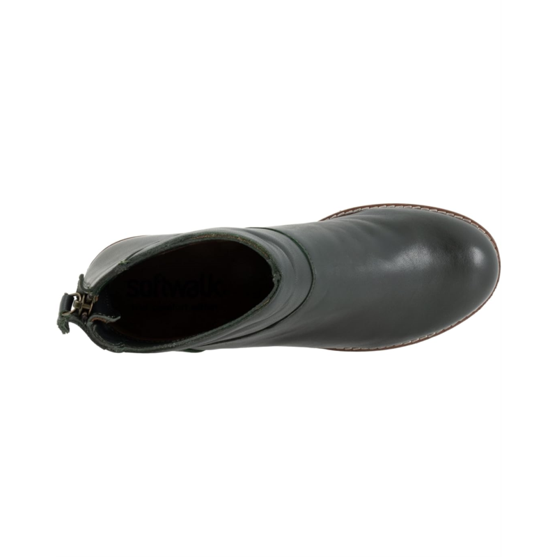 Opt for the classy and comfortable Softwalk Elmhurst Boots while heading for your outdoor expeditions. This ankle-high pair features a leather upper construction with removable, cushioned footbed and a zippered back closure.