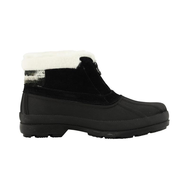 Water-resistant rubber upper and Scotchgard treated suede and knit shaft with soft pile lining.