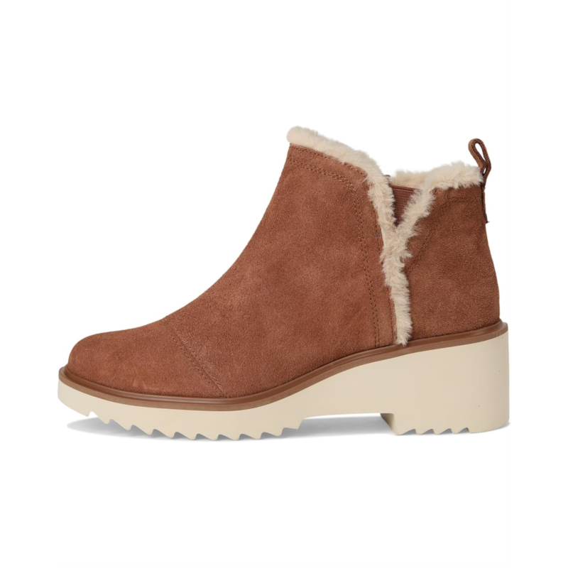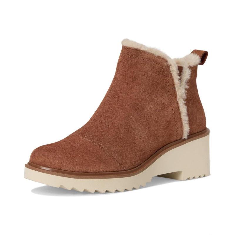 Discover the essence of class wearing the TOMS Maude. Crafted from suede upper, polyester lining, and polyurethane insole, this pair of boots features round toe, wedge heels, heel pull tab, side zippered and lateral v gore for easy on-and-off, and TPR welt.