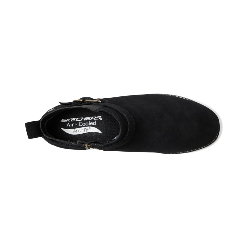 Indulge yourself in the supportive side of winter boot style, wearing the SKECHERS Arch Fit Marlie - Flirty Vibes boots. These ankle-high boots feature a soft suede upper with a buckle wrap detail, plus a zippered side closure. Their removable, patented Skechers Arch Fit foam insole with podiatrist-certified arch support helps mold to your foot to reduce shock and increase weight dispersion. The upper of these boots is treated with 3M Scotchgard to resist water and stains, while the fabric lining provides all-day comfort. These boots feature a podiatrist-designed shape that is developed with 20 years of data and 120,000 unweighted foot scans.
