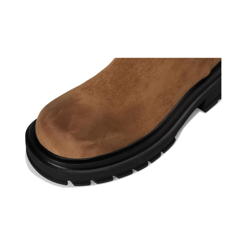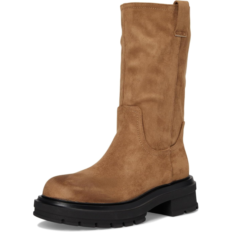 Elevate your shoe game choosing the Madden Girl Roost Women''s Boot and enjoy a blend of style and comfort with every step. The upper is made from faux suede with distressed finishes, a polyvinyl chloride lining, and a padded insole. A pull-on design with side pull tabs aids effortless wear, while a block heel and treaded sole provide stability on city streets or open roads.