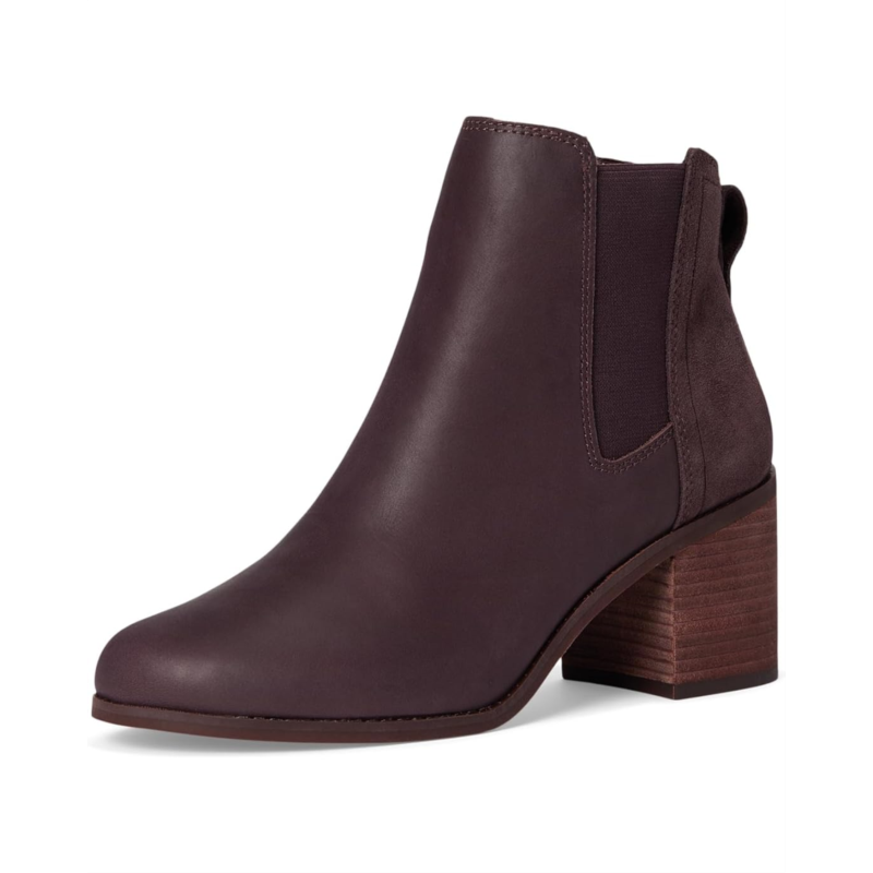 The TOMS Evelyn Chelsea Ankle Boot stands on a sleek block heel and features dual goring for an easy pull-on style. The back pull tabs are designed for wearable ease.