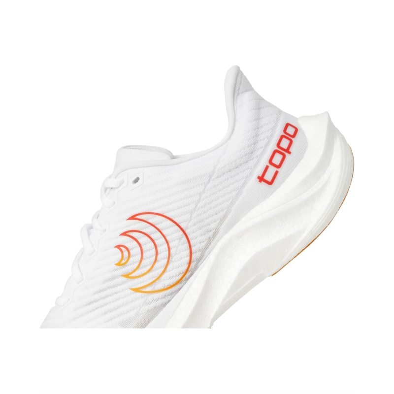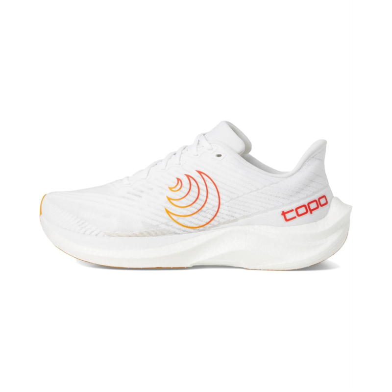 Run further and feel stronger: The Topo Athletic Cyclone 3. Designed for speed, its full Pebax Powered midsole delivers an ultra-light, responsive ride that propels you forward with every step. The upgraded durable mesh upper offers enhanced breathability and a barely-there fit, wrapping your foot in featherlight support. A strategically placed rubber outsole ensures grip and durability where you need it most, without adding extra weight. Finished with a secure lace-up closure, EVA insole, and polyester lining, this running essential is built to help you move faster, longer, and stronger.