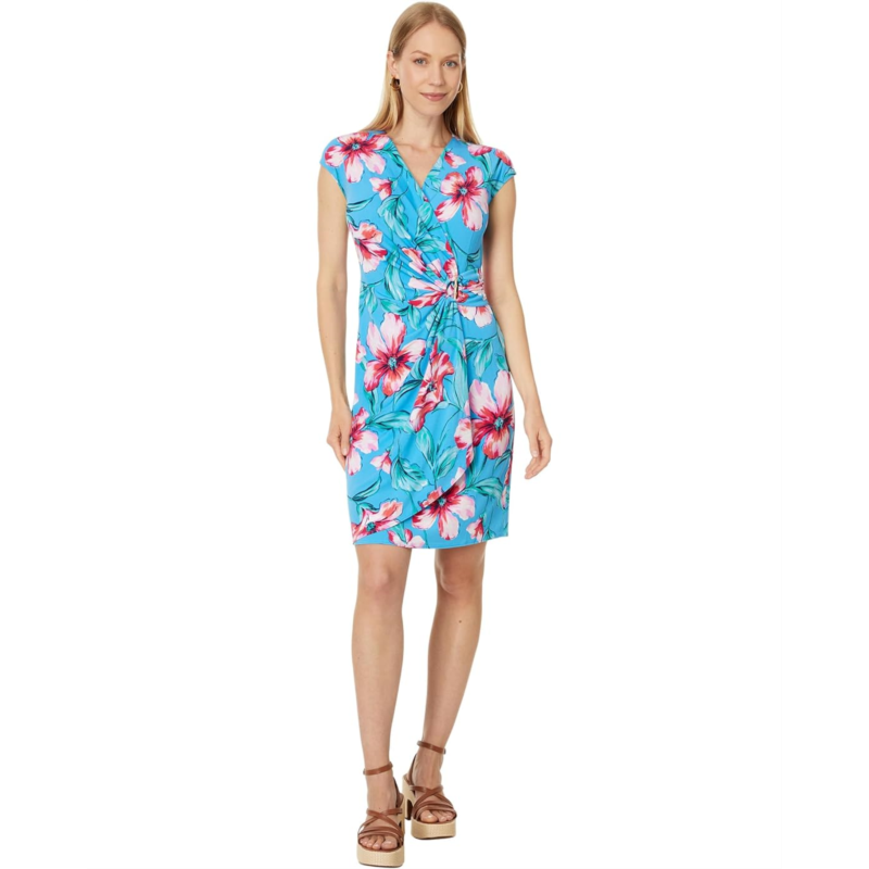 Blooming with confidence in the Tommy Bahama Clara Stripe Barts Blossom Dress. Featuring a chic criss-cross neck and a flattering wrap design with a touch of metallic flair at the waist, this knee-length, wrinkle-resistant dress with short sleeves and a hint of stretch ensures you stay stylish and comfortable on the go.