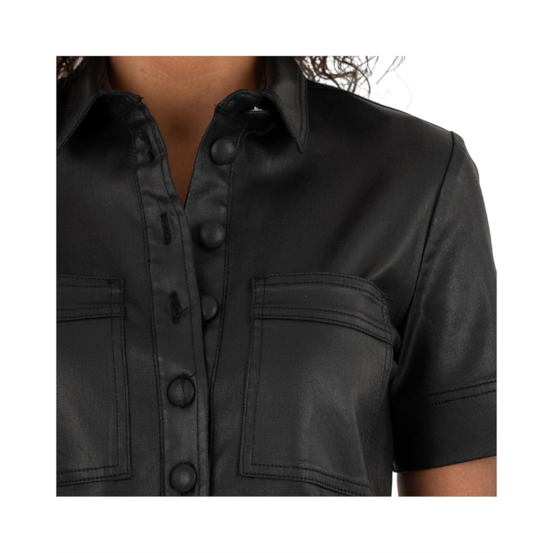 Meet the Tatiana Dress from KUT from the Kloth, your new go-to for breezy style with a polished twist. Designed with a classic collared neck and a half-button placket, this short dress effortlessly blends laid-back ease with subtle sophistication. The short sleeves keep it light and airy, perfect for warmer days, while the two patch chest pockets and thoughtful pocket welts add a touch of functional flair. Sitting just above-the-knee, it offers a flattering silhouette that moves with you, ideal for brunch dates, office-casual looks, or weekend adventures.