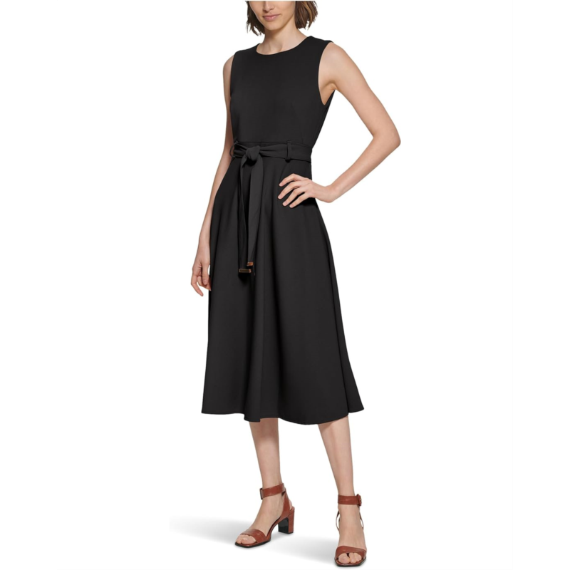 Calvin Klein Sleeveless Scuba Crepe Self Tie Aline dress.