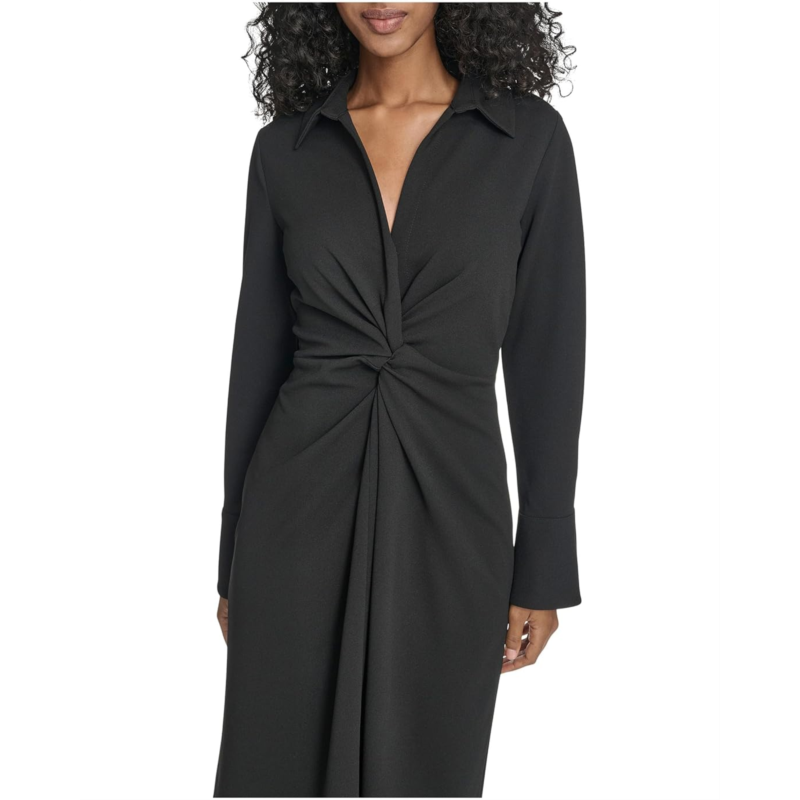 [US] Calvin Klein Long Sleeve Scuba Crepe Twist Front Sheath