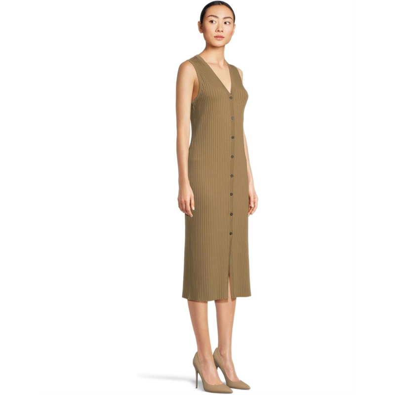 Cut with a slim, yet relaxed silhouette, the endlessly versatile Vince Rib Sleeveless Dress is crafted from a soft, stretchy ribbed cotton that feels like butter on the skin. The button-front midi dress features a V-neckline, sleeveless style, and a straight hem.