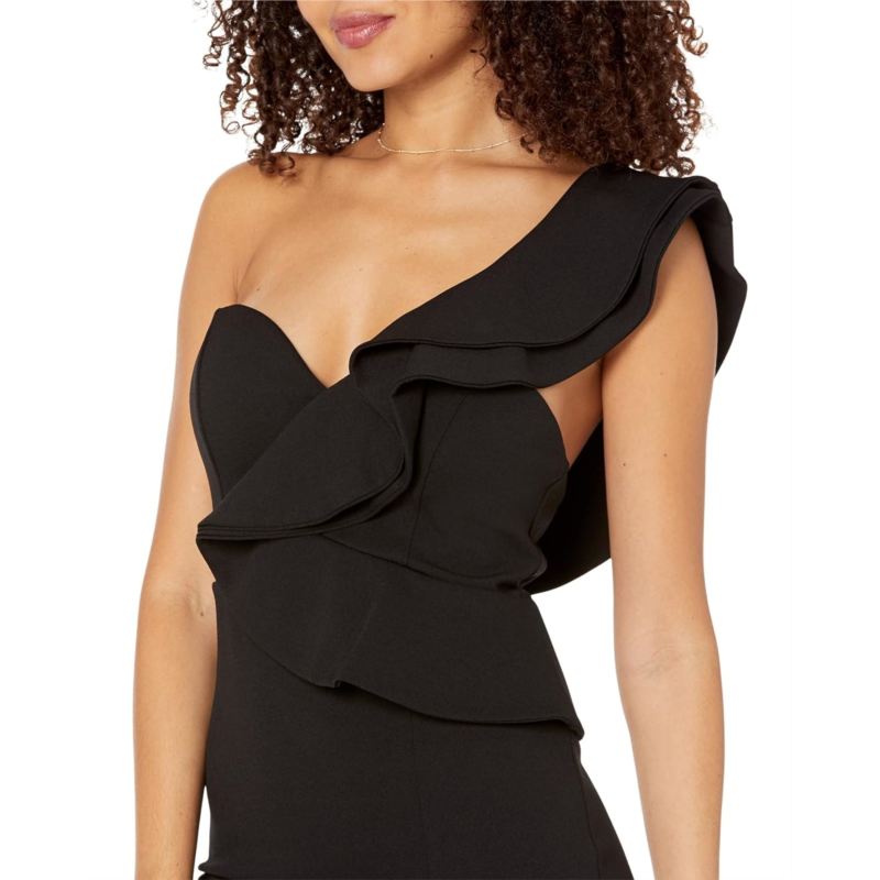 Sweetheart neckline with one-shoulder design.