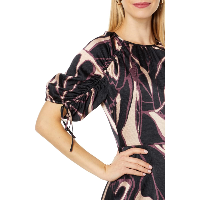 Get an instant dose of classic elegance by slipping into the Ted Baker Gilliaa Printed Mini Fit-and-Flare with Puff Sleeve dress.