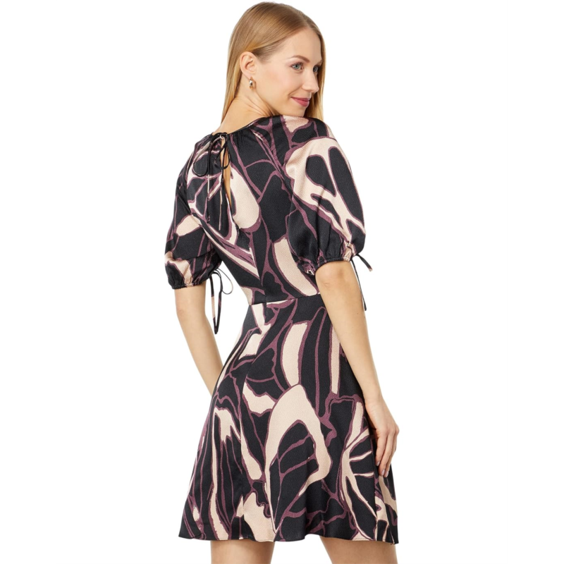 [US] Ted Baker Gilliaa Printed Mini Fit-and-Flare with Puff Sleeve