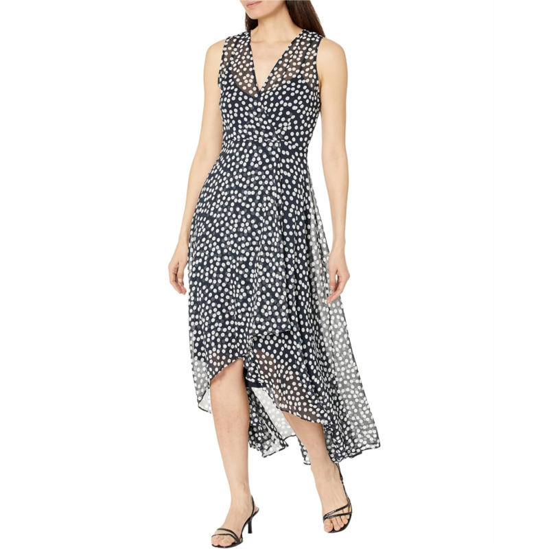 [US] Calvin Klein Chiffon Print V-Neck Maxi Dress