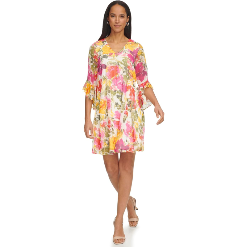 Calvin Klein Short Chiffon Dress with Bell Sleeves