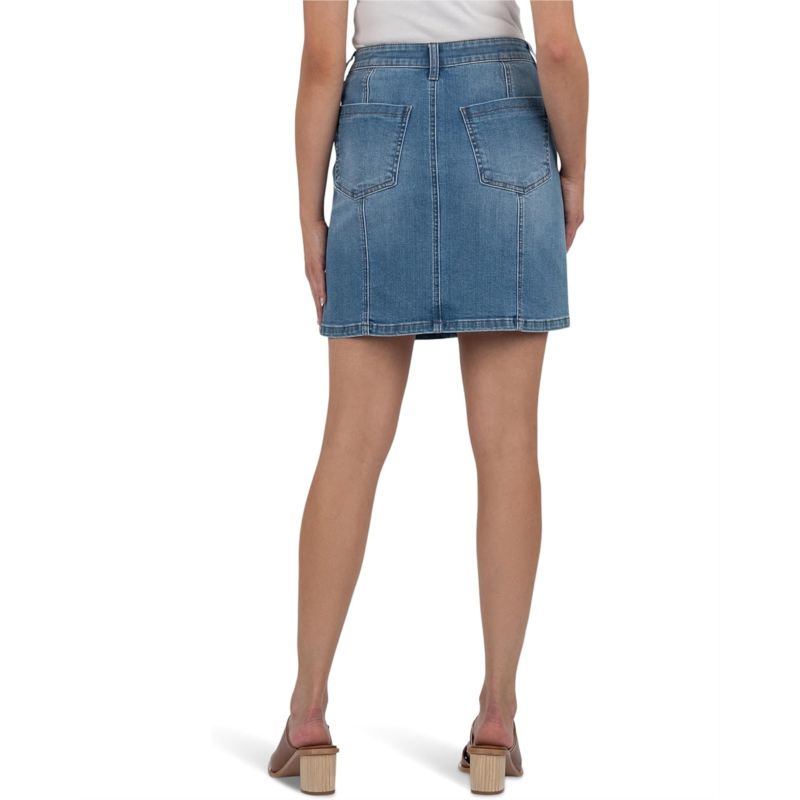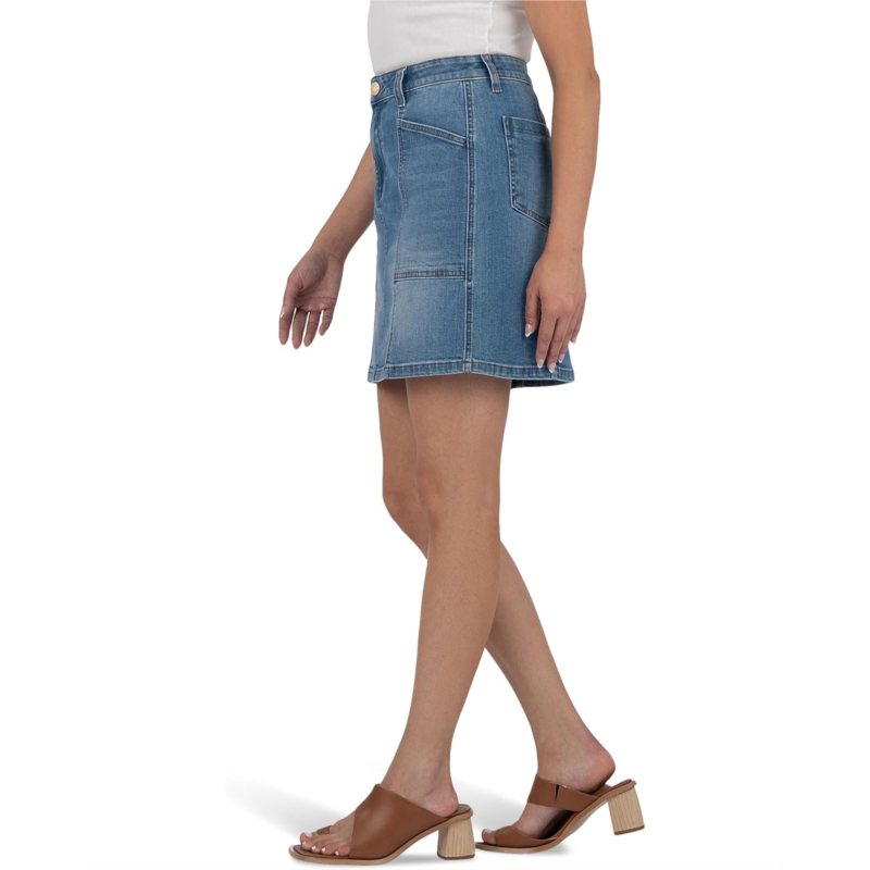 Ready for the streets in the KUT from the Kloth Hayden Skirt With Patch Pocket. Designed with a flattering high-rise fit and an above-the-knee hemline, this wardrobe staple gives off a polished vibe with a playful twist. The zip-fly with button closure ensures a secure, comfortable fit, while classic belt loops let you accessorize with ease. Four functional pockets-plus a front and back seam and bold slash patch pockets-add a touch of utility-chic charm.