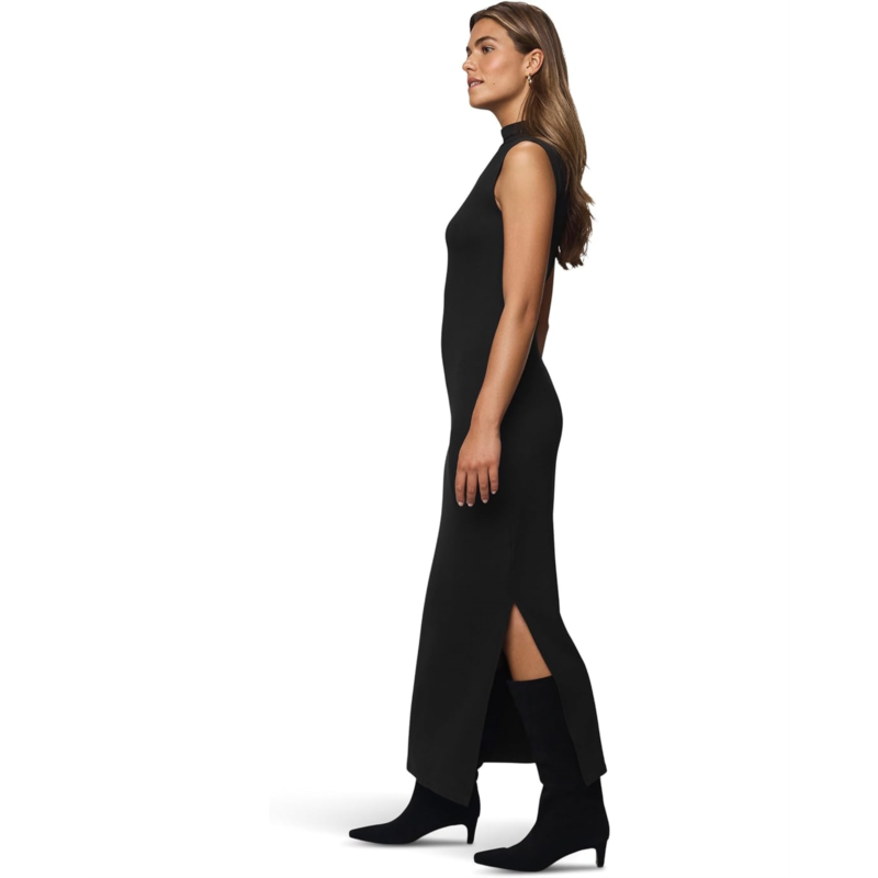 The Supersoft Trim Dress is made with LENZING ECOVERO fibers, which are derived from certified renewable wood sources, plus a touch of stretch for added comfort. Designed with a sleek mock neck and ankle-grazing length, this sleeveless silhouette makes a sophisticated statement from day to night. A velvet trim detail runs down the back center seam, giving this timeless piece a luxe finish.