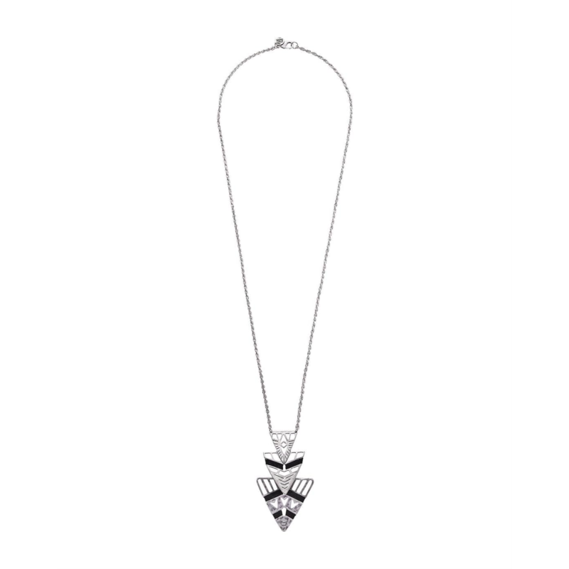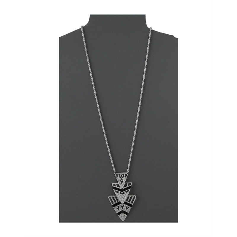 Silver-tone necklace with arrowhead pendant.