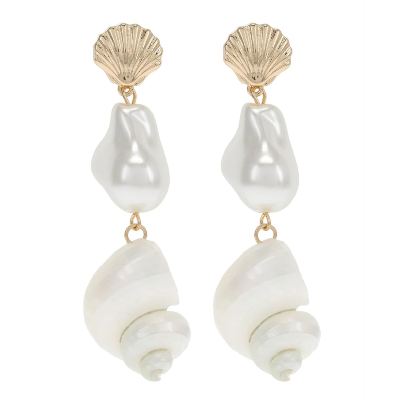 Give a chic update to your casual or party-wear looks wearing Lilly Pulitzer Summer Serenade Drop Earrings. Crafted in a metal body, the shell and baroque pearl drop earrings feature a gold metal sunshell topper and a post-back closure.