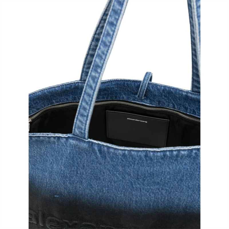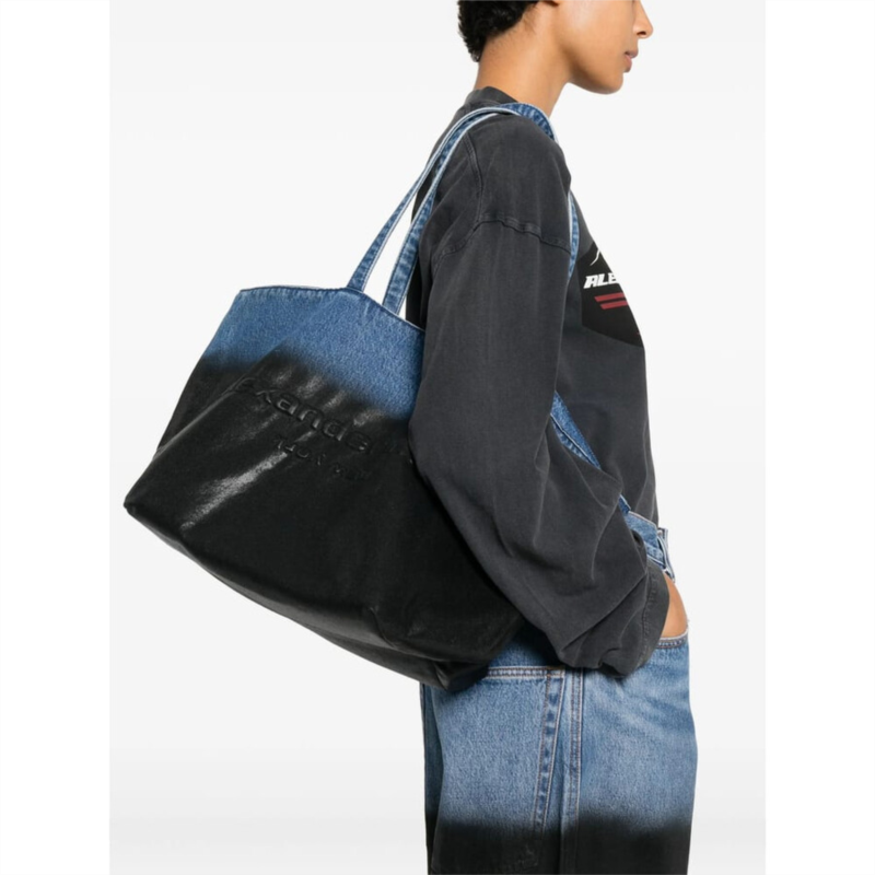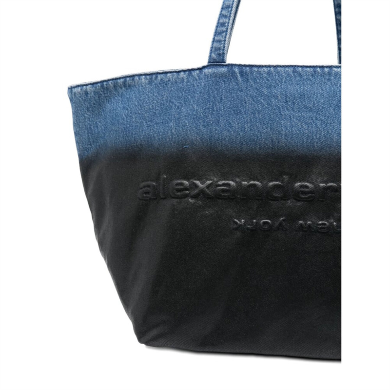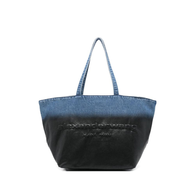 Alexander Wang Ladies Tote. SKU: 20126T04T 400D. Color: Black /Blue. Alexander Wang Bag. black and dark blue embossed logo top handles