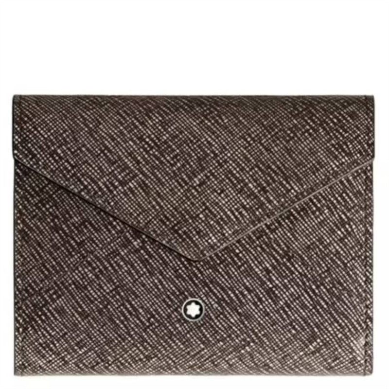 MontBlanc Wallets. SKU: 198980. Size: 4.7'' x 0.4'' x 3.7''. Montblanc Sartorial Trio 6cc Wallet. This compact tri-fold wallet is designed to fit comfortably into your pocket. Crafted from bold Saffiano-printed leather, the exterior features an elegant blend of ivory and dark brown. It offers six card slots, a zippered coin pocket, and a compartment for bills, combining style with practical functionality. Material: Leather.