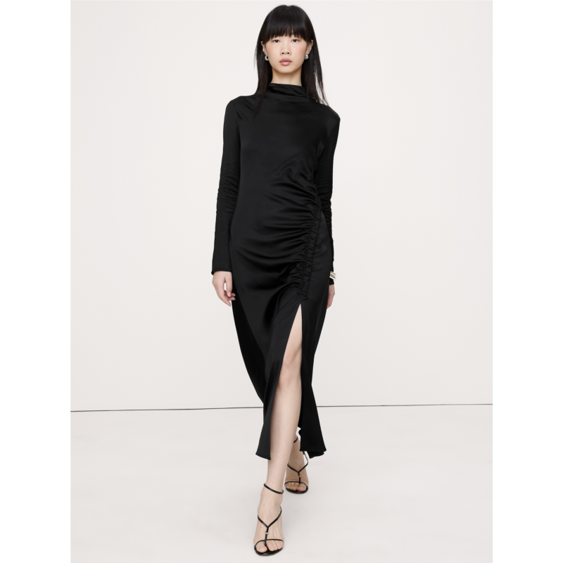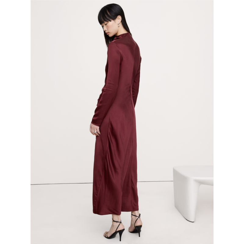 [US] Bananarepublic Stretch-Satin Ruched Maxi Dress