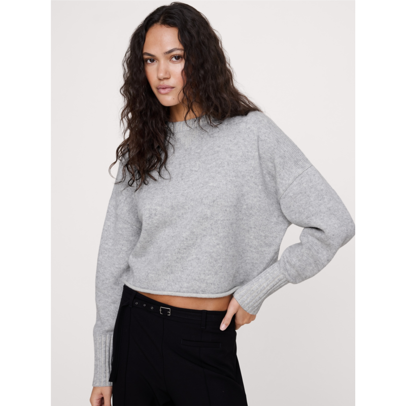 - We reimagined the athletic silhouette of a classic crew-neck sweatshirt in our best-selling Merino wool-cotton yarn. Here, the yarn is plaited to create a two-color effect and the fit is relaxed and a bit short to show off high-rise styles.