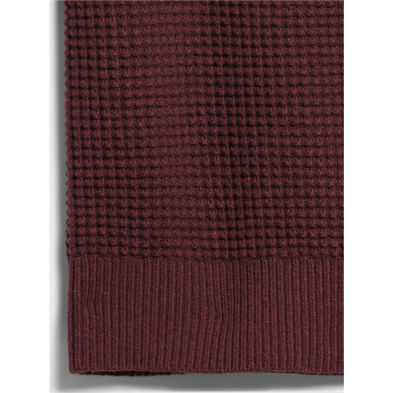- TEXTURE: A mix of waffle-knit stitches through the body and ribbed-knit sleeves creates a luxe, textured look.