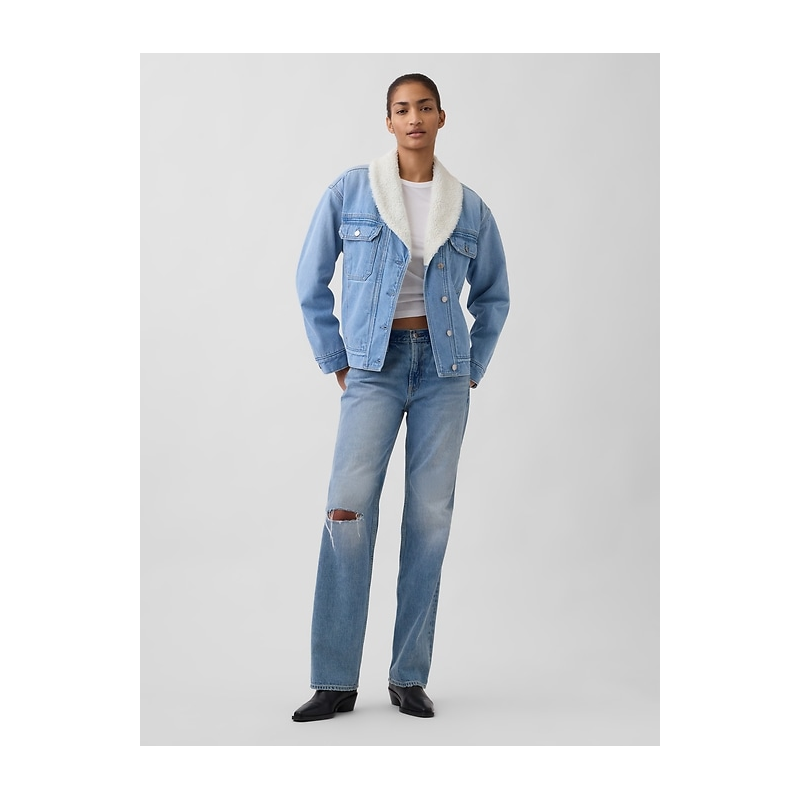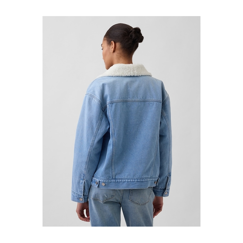- Authentic non-stretch denim jacket with a cozy sherpa collar and body lining. In an oversized fit
