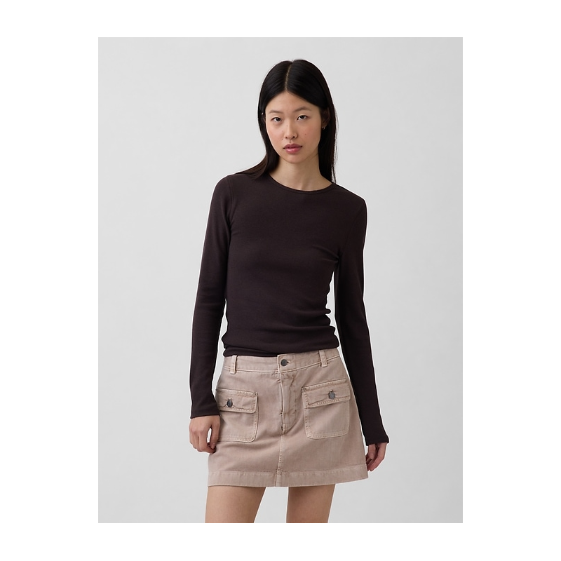 - Soft, stretch ribbed cotton-modal blend T-shirt in a slightly cropped length.