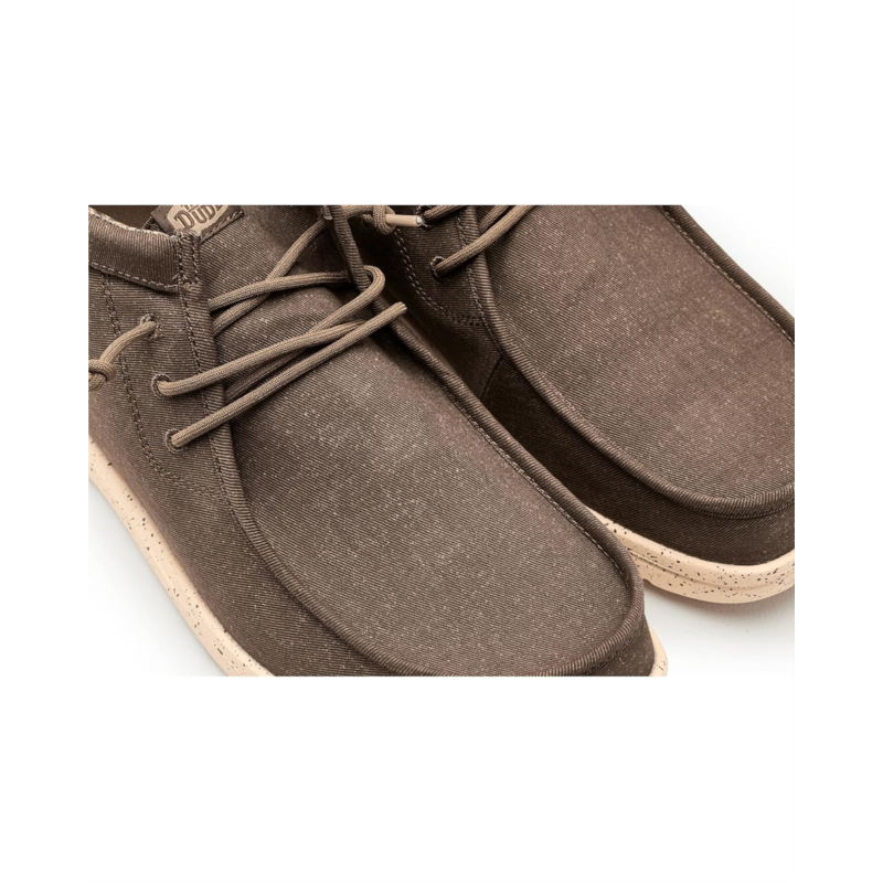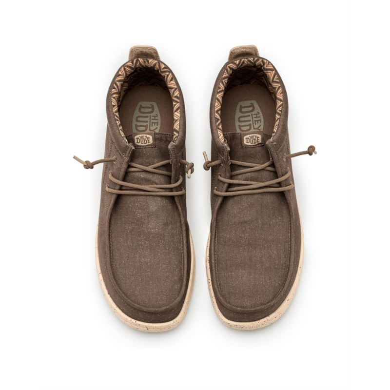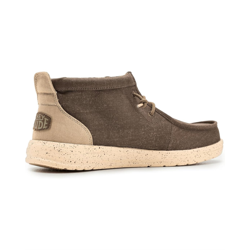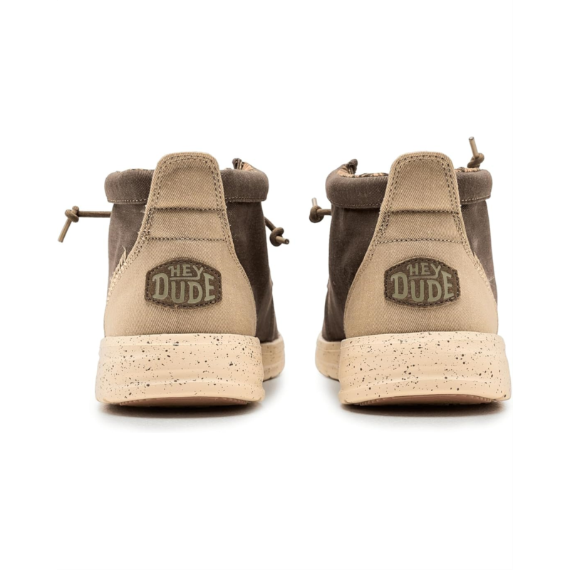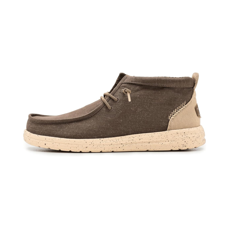 - Easy, breezy, textile makes this Hey Dude Wally Mid Gripr Stretch Canvas slip-on sneaker ready to roam. Easy-on elasticized laces, ethylene vinyl acetate outsole, and removable insole provide go-to comfort. Flex & Fold technology supports healthy feet with its unique shape, giving complete freedom of movement.