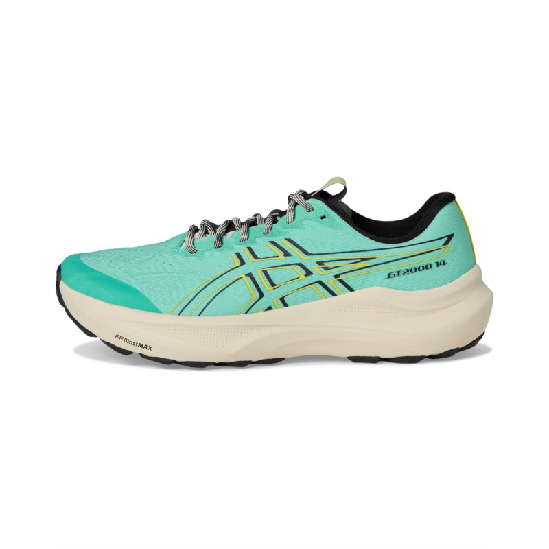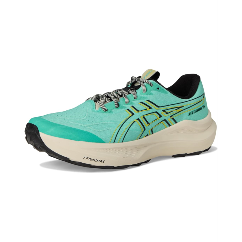 - The ASICS Gt-2000 14 Tr shoes are designed to help provide a more energetic ride and a supportive running experience. A trampoline-inspired forefoot pod is positioned on the medial side of the outsole. This helps produce better stability and a more balanced toe-off. The midsole is updated with a FF BLAST MAX cushioning that creates a more energized toe-off, offering cloud-like softness during the landing phase of your stride. They are made of a polyester insole and lining. The woven mesh upper helps keep your feet dry. Their asymmetric tongue wing provides a comfortable and secure feel around the midfoot while reducing tongue movement. Lastly, the trail-specific outsole design of these low-top, lace-up shoes helps create better traction, improved softness, and advanced durability for mixed terrain.