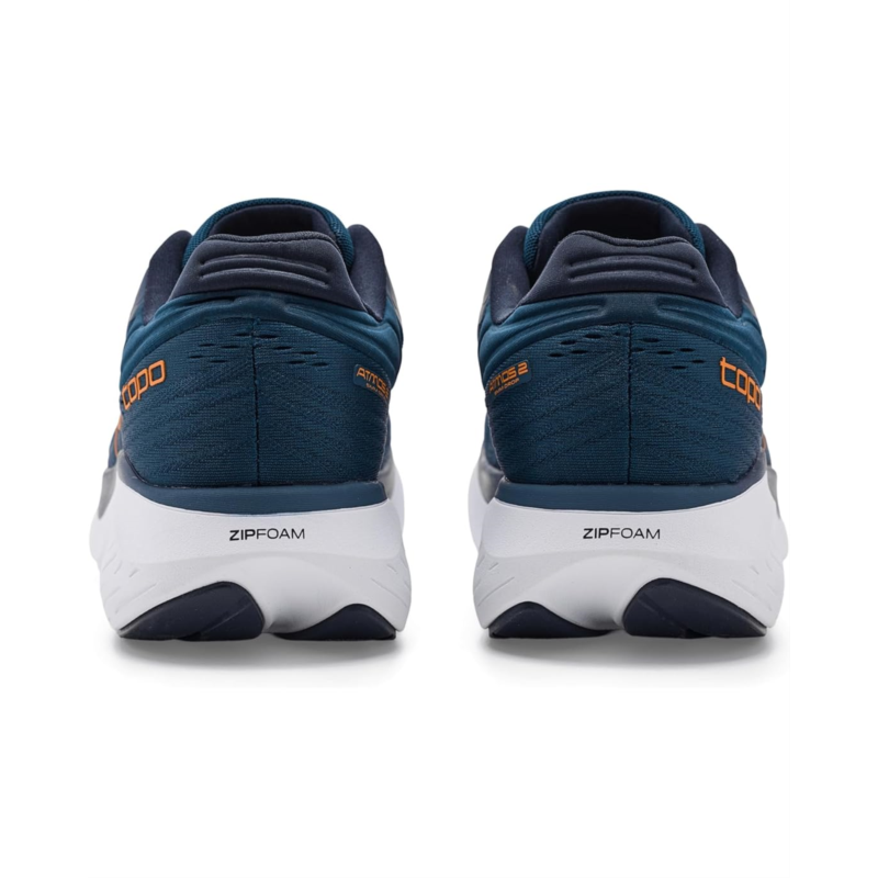 - The Topo Athletic Atmos 2 is a max-cushioned, neutral road shoe designed for plush comfort and reliable performance across daily training, long runs, and fitness walking. Its updated 40 x 35 mm platform features a ZipFoam midsole that delivers increased rebound for a soft yet energetic ride. A redesigned rubber outsole improves traction, slip resistance, and reduces weight, while the recycled upper ensures a breathable, secure fit with added visual appeal. Inside, the OrthoLite Performance insole provides a cushioned step-in feel. Made with polyester upper and lining, the Atmos 2 offers smooth transitions and lasting comfort.