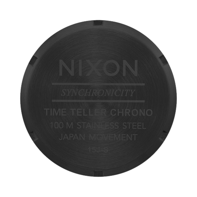 - Molded after watches that were passed down from generation to generation, we now introduce the chronograph to the Nixon Time Teller Chrono. 10 ATM for the confidence in wet environments. Stay styled and secure with its custom jewelry style bracelet that fits just about everyone. Technical functionality and simple sophistication together as one. Made with high-quality stainless steel and a comfortable five-link band, this watch is a must-have accessory. The Miyota Japanese movement provides reliable timekeeping, while the deployment clasp closure ensures a customizable fit.