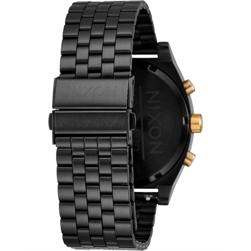 - Molded after watches that were passed down from generation to generation, we now introduce the chronograph to the Nixon Time Teller Chrono. 10 ATM for the confidence in wet environments. Stay styled and secure with its custom jewelry style bracelet that fits just about everyone. Technical functionality and simple sophistication together as one. Made with high-quality stainless steel and a comfortable five-link band, this watch is a must-have accessory. The Miyota Japanese movement provides reliable timekeeping, while the deployment clasp closure ensures a customizable fit.