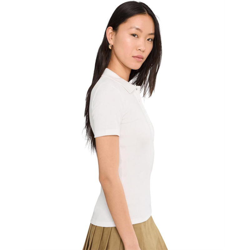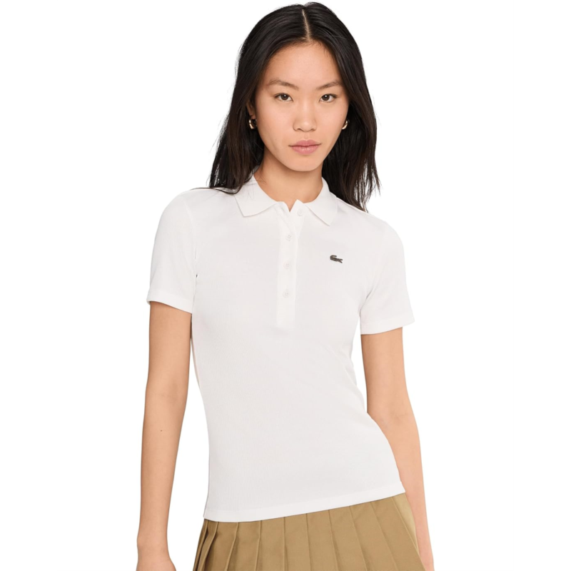 - The Lacoste Slim Fit L.12.D Ribbed Cotton Polo Shirt redefines casual style with a flattering silhouette and elevated details. Designed in a sleek slim fit, this womens polo hugs just right while maintaining all-day comfort. The classic polo neck and short sleeves keep the look timeless, while the pull-on design makes styling easy and fuss-free. Ribbed cotton fabric adds subtle texture and stretch, complemented by a fitted waistband that enhances your natural shape. A deep button placket with refined tone-on-tone buttons lends a contemporary, fashion-forward feel. Finished with Lacostes iconic recycled crocodile sewn on the chest, this polo blends heritage with sustainability.